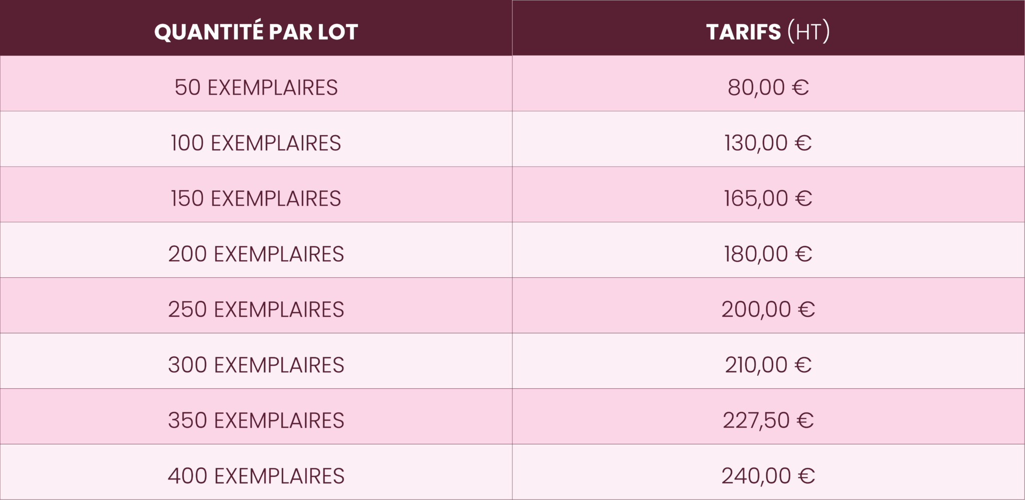 Ce support est à personnaliser via les champs à remplir ci-dessous. Vous recevrez un BAT (Bon à Tirer) pour modification ou validation avant impression.