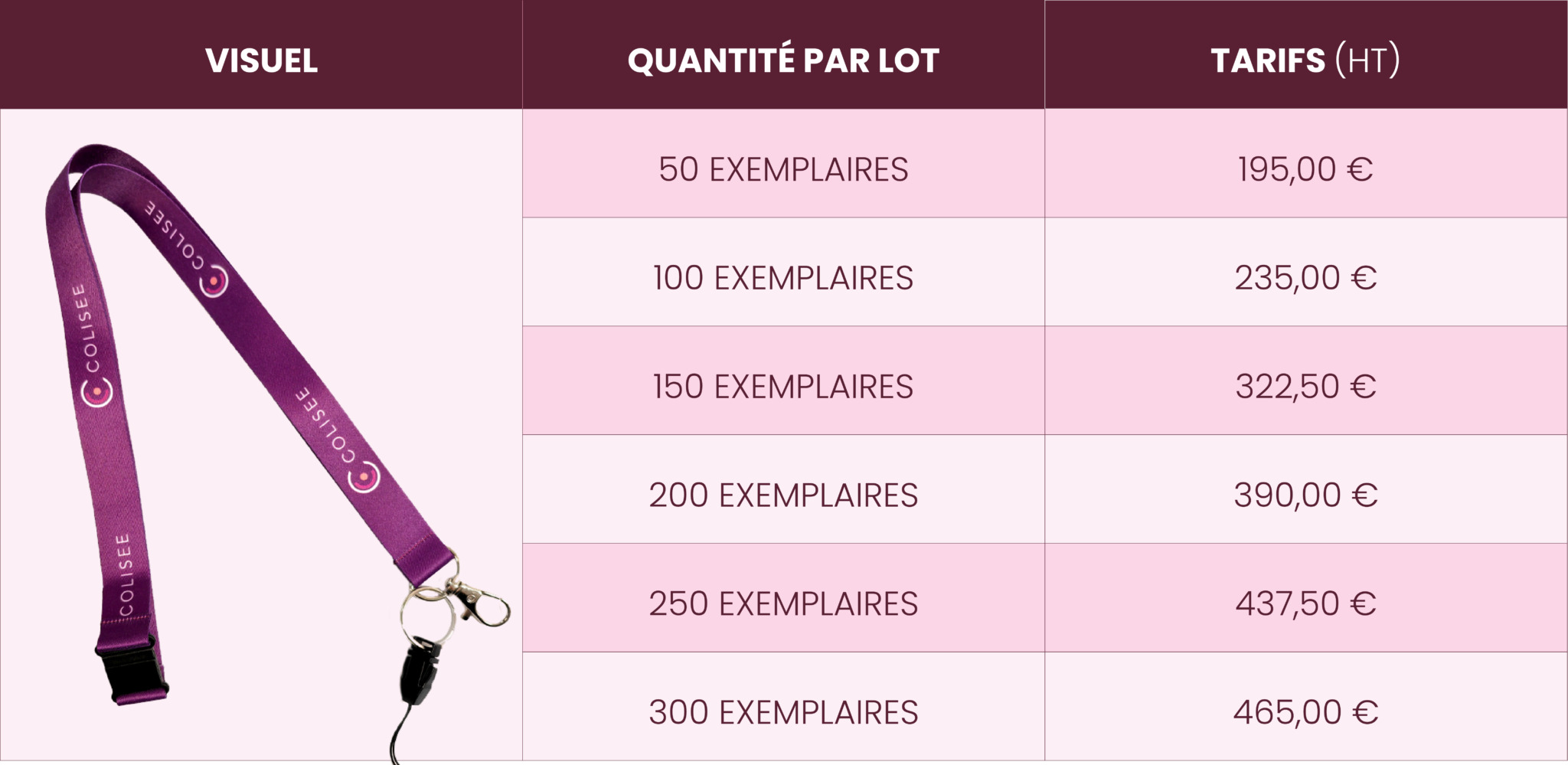 - Format fini : 280x16mm – Polyester 180 gr couleur violet foncé Colisée.